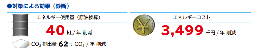 愛媛県のJAえひめアイパックス株式会社が運営するスーパーマーケットで省エネ診断を実施したところ、省エネ運用と省エネ/再エネ機器の導入によって62トンのCO2排出量を削減できることがわかりました。年間約350万円のエネルギーコストの削減も見込めると予想しており、気候変動対策が事業の効率化にもつながることがわかります。